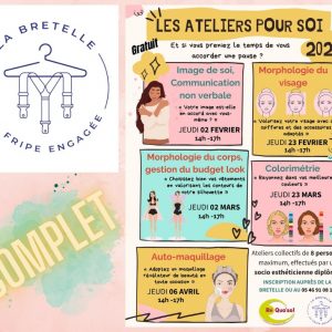 ➳ Ils sont de retour !! « 𝙇𝙚𝙨 𝙖𝙩𝙚𝙡𝙞𝙚𝙧𝙨 𝙥𝙤𝙪𝙧 𝙨𝙤𝙞 » de La Bretelle la fripe engagée. Et si vous appreniez à faire connaissance avec la personne la plus importante… vous-même? C’est gratuit et…